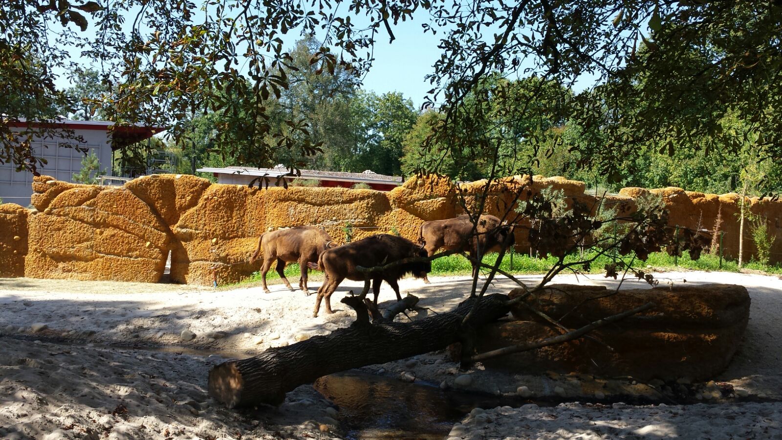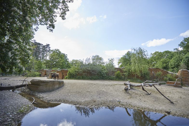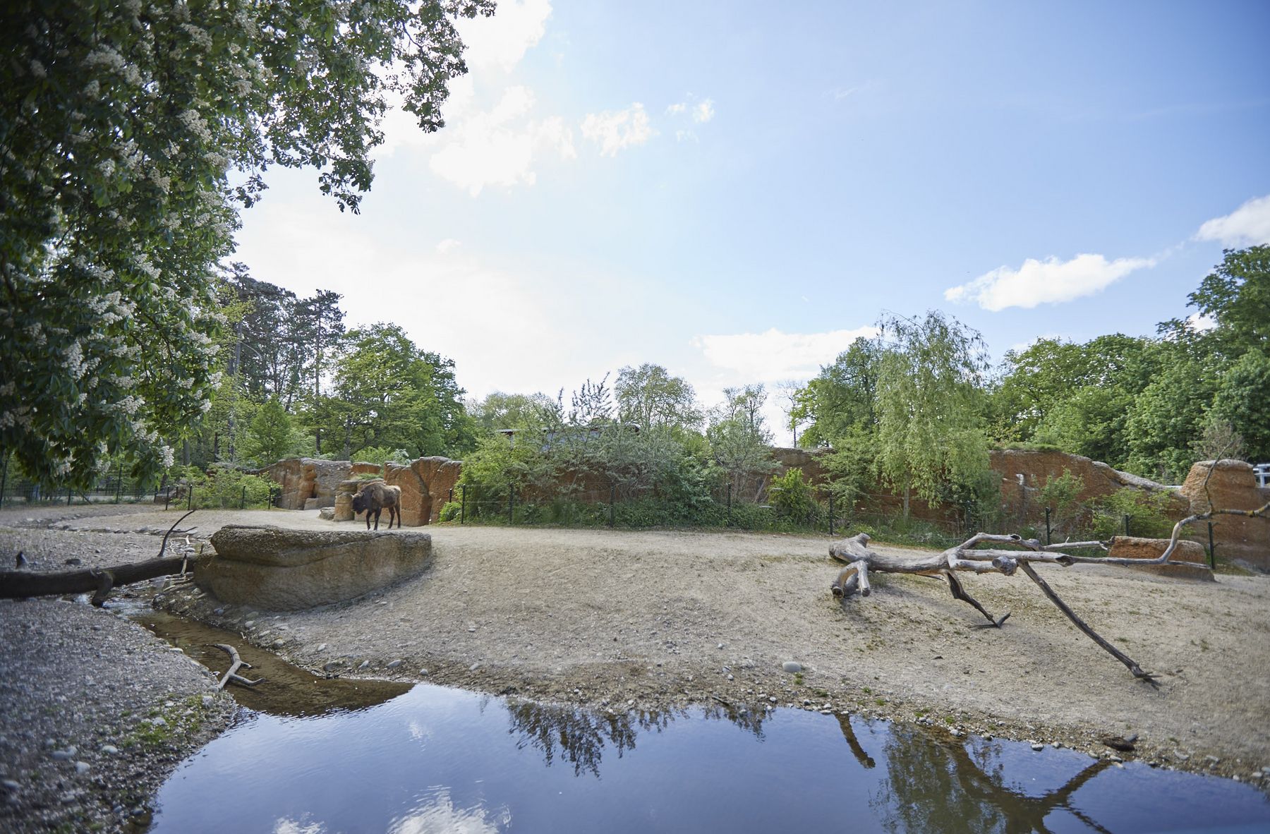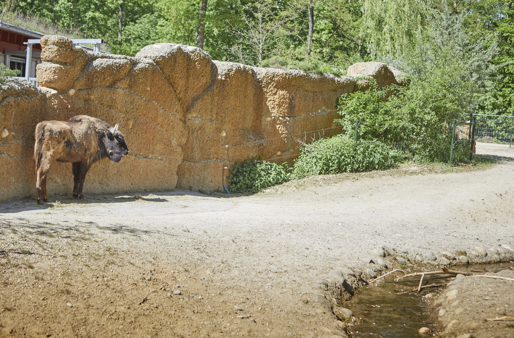 Die Wisent-Anlage ist in zwei Kammer unterteilt. Die erste Kammer bietet unter anderem offene Wasserläufe, künstliche Nagelfluh-Felsmauern und einen grossen Vorhof. Sie wurde gleichzeitig mit dem Betriebshof gebaut, der sich zwischen den neuen Betriebsgebäuden aufspannt und neben der Zulieferung auch als Aufenthaltsort genutzt werden kann. Das oberflächlich anfallende Regenwasser wird in ein mit Wasserpflanzen begrüntes Retentionsbecken entwässert und nach dessen Säuberung wieder in den natürlichen Kreislauf zurückgeführt.